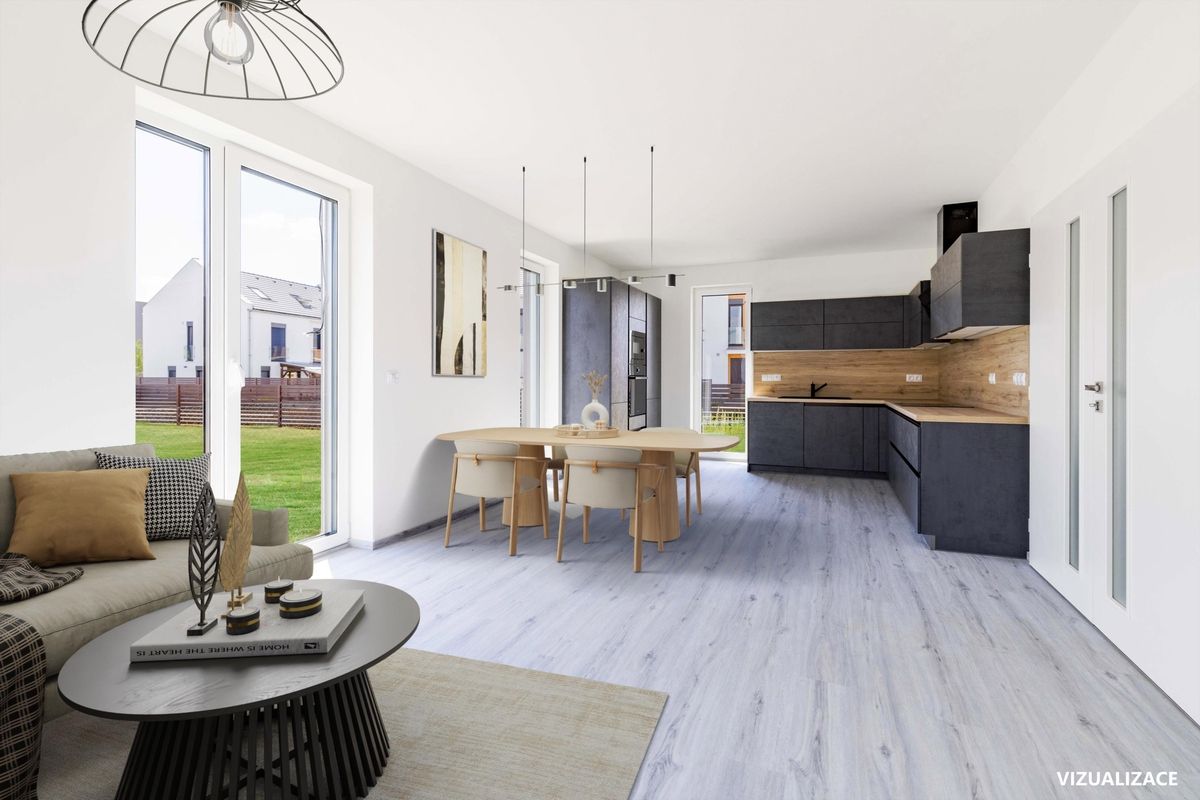 The Jinocany Housing project is situated in an attractive location with excellent access to Prague and also to Vaclav Havel Airport. There is a bus and train stop near the houses, from where you can get to the metro B Zlicin in just 9 minutes or to the Smichovské nadrazi station in 19 minutes. The surrounding area offers rich civic amenities including a newly renovated primary and kindergarten. Local cycle paths, swimming pools and natural surroundings attract active leisure activities. If you are looking for an ideal place for your new home within easy reach of Prague, family houses in Jinocany are a great choice.