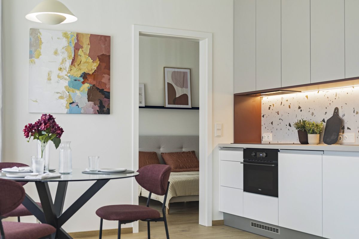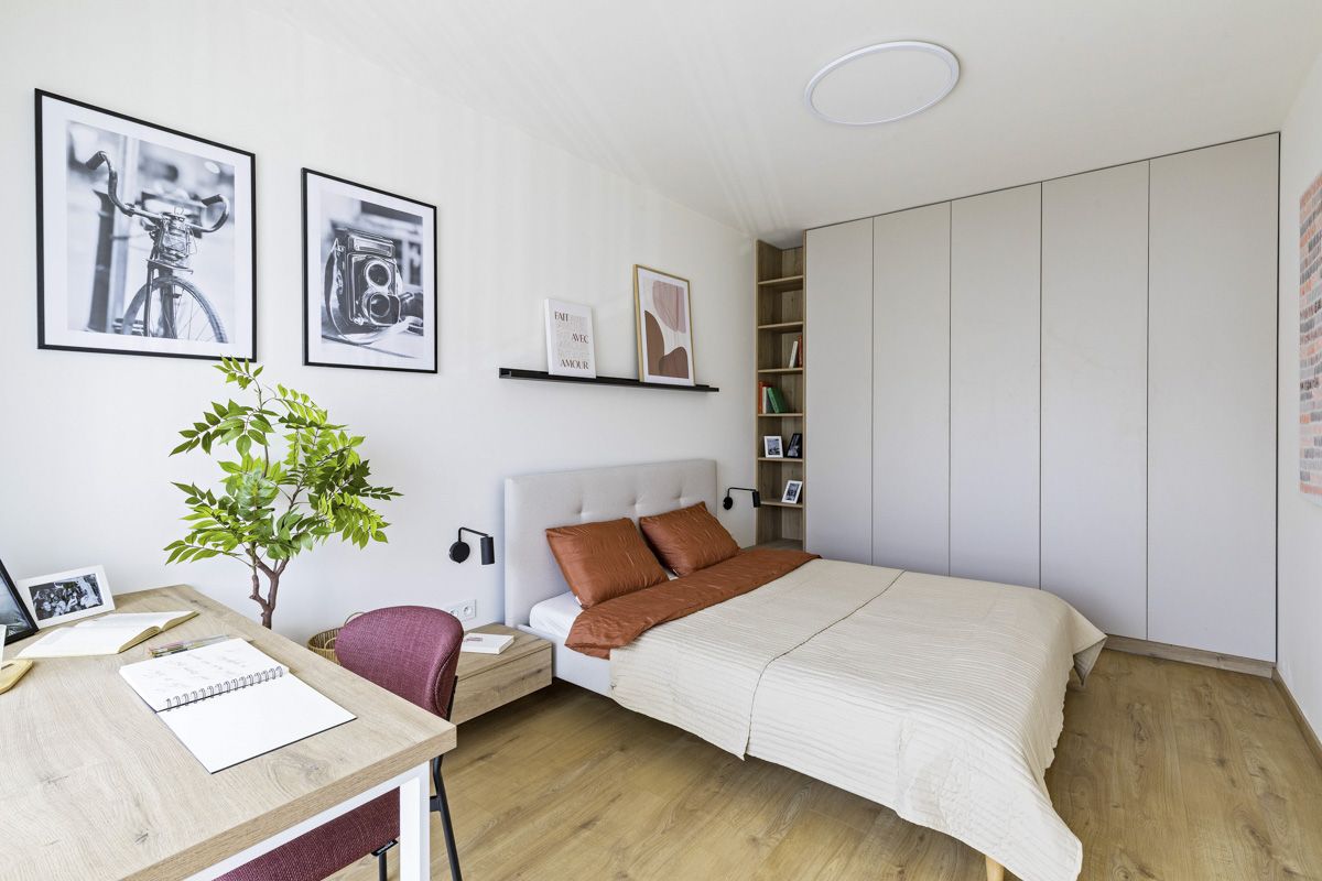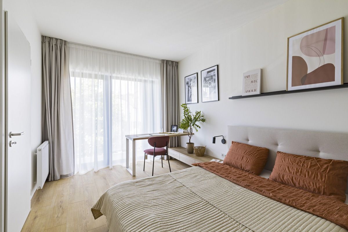 Interiéry bytů ve Vaníčkově Dvoře vynikají nadčasovou elegancí a důrazem na kvalitu. Laminátové podlahy v obytných místnostech doplňuje keramická dlažba v koupelnách a chodbách, okna s izolačním trojsklem zajišťují ticho i tepelný komfort. Koupelny jsou řešeny v moderním stylu s vanou nebo prostorným sprchovým koutem. Architekti věnovali pozornost i společným prostorám – decentní materiály, zelený vnitroblok a promyšlené detaily vytvářejí harmonické prostředí, které přirozeně navazuje na okolní zástavbu.