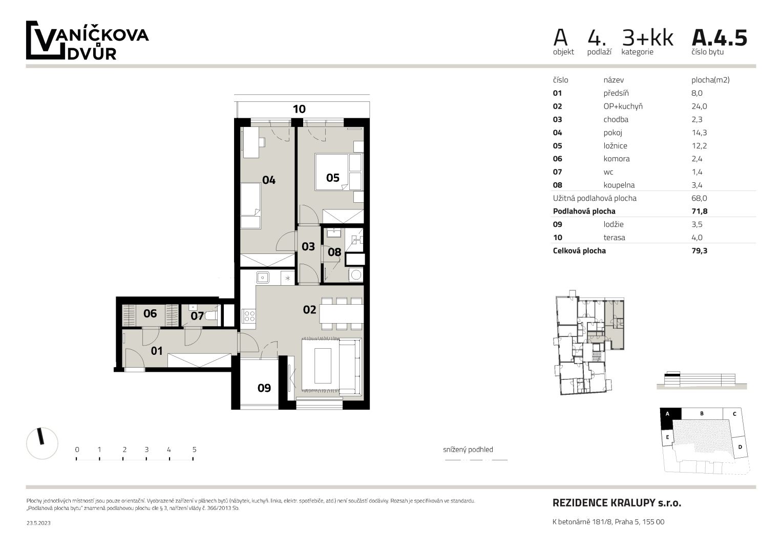 The modern project Vanickova Dvur offers for sale a generous duplex apartment with a layout of 2 bedroom of 71.8 sqm with balcony of 7.5 sqm. The apartment is located on the 2nd floor in the newly built project Vanickova Dvur in the heart of Kralupy nad Vltavou.