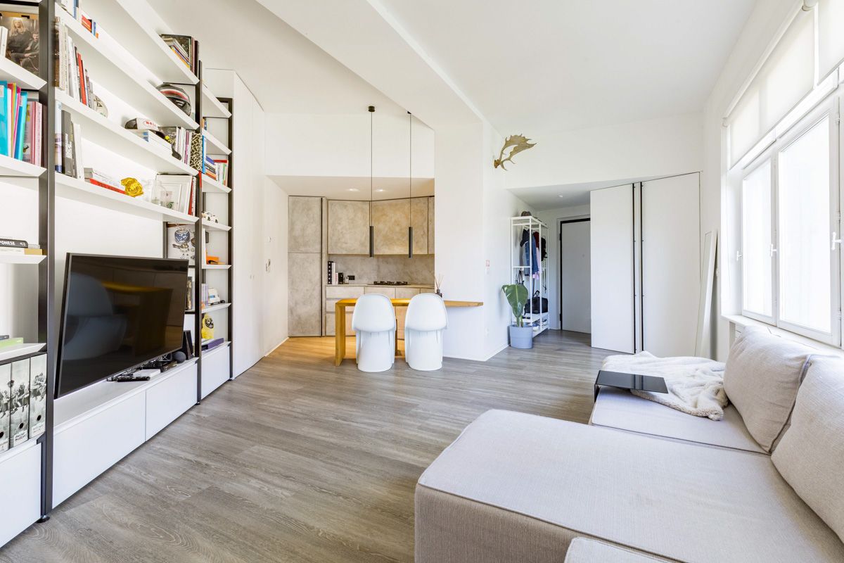 Thanks to the large windows facing west in the living room and east in the bedroom, the apartment is full of light all day long.