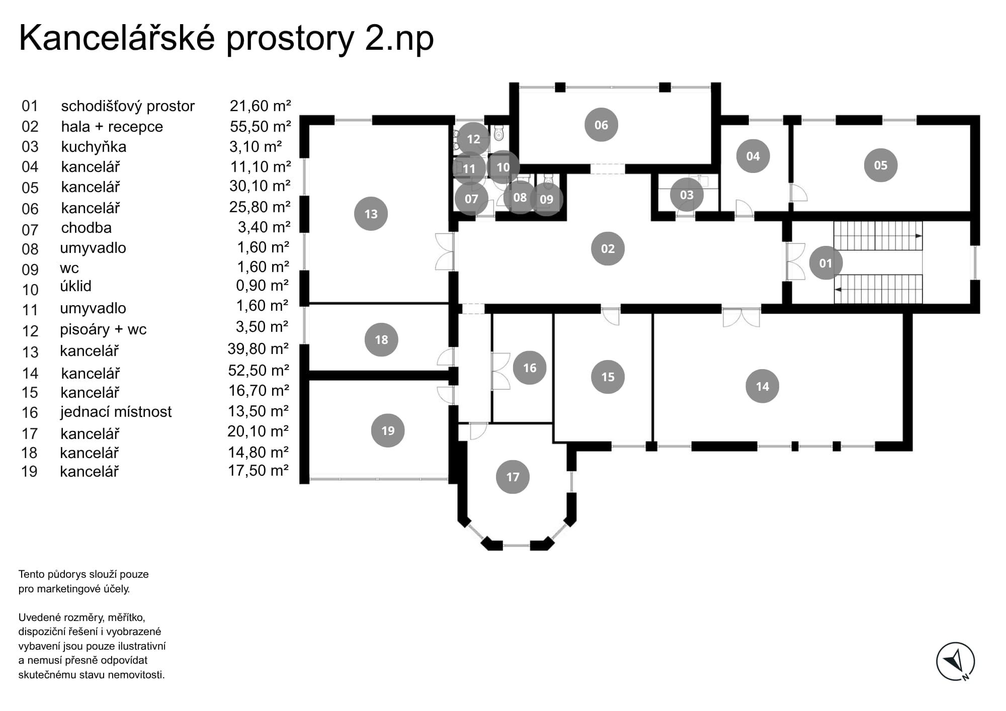 Historic villa from 1905. Completely renovated in 1999. Original elements such as the slag brick façade and the half-timbered structure have been preserved. Currently used as an office building. Almost the entire building is rented to several tenants. The overall technical condition is good, the property is continuously maintained. Heating by hot water, heat exchanger in the building (central heating). In 2009 was realized loft extension 3. NP and 4. All rooms are well lit thanks to large windows. One of the few buildings in the center of Kladno with private parking for 32 vehicles.