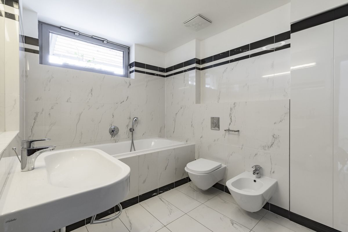 The apartment is in a perfect condition, with high-quality wooden flooring, air conditioning in every living room, a fully equipped kitchen in a timeless design, and an independent gas boiler. One parking space in the underground garage and a 3.6 sqm storage unit are included.