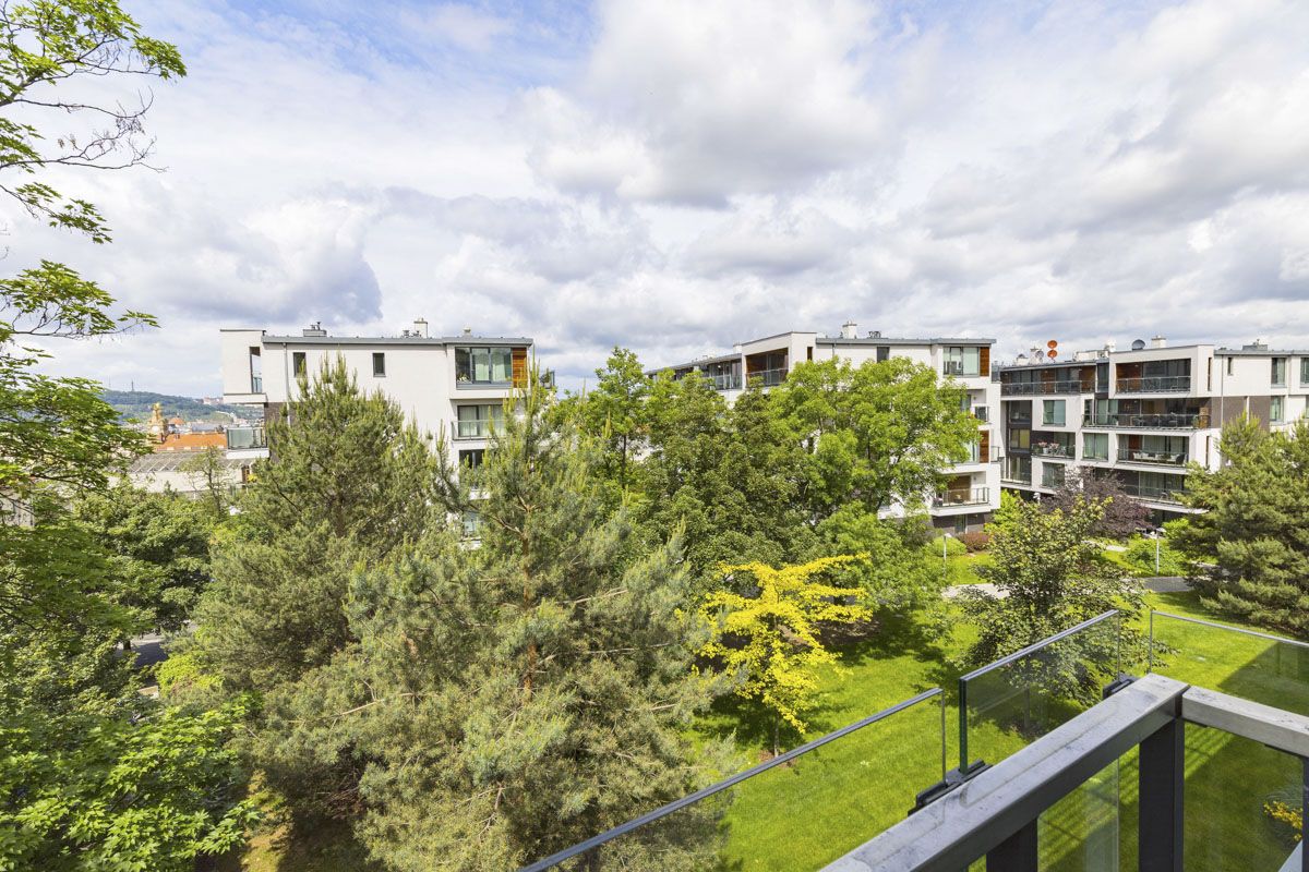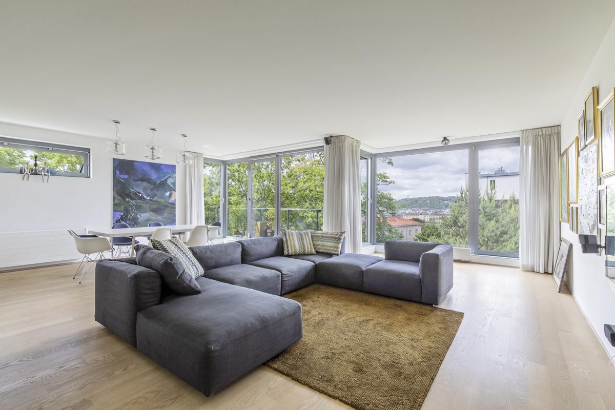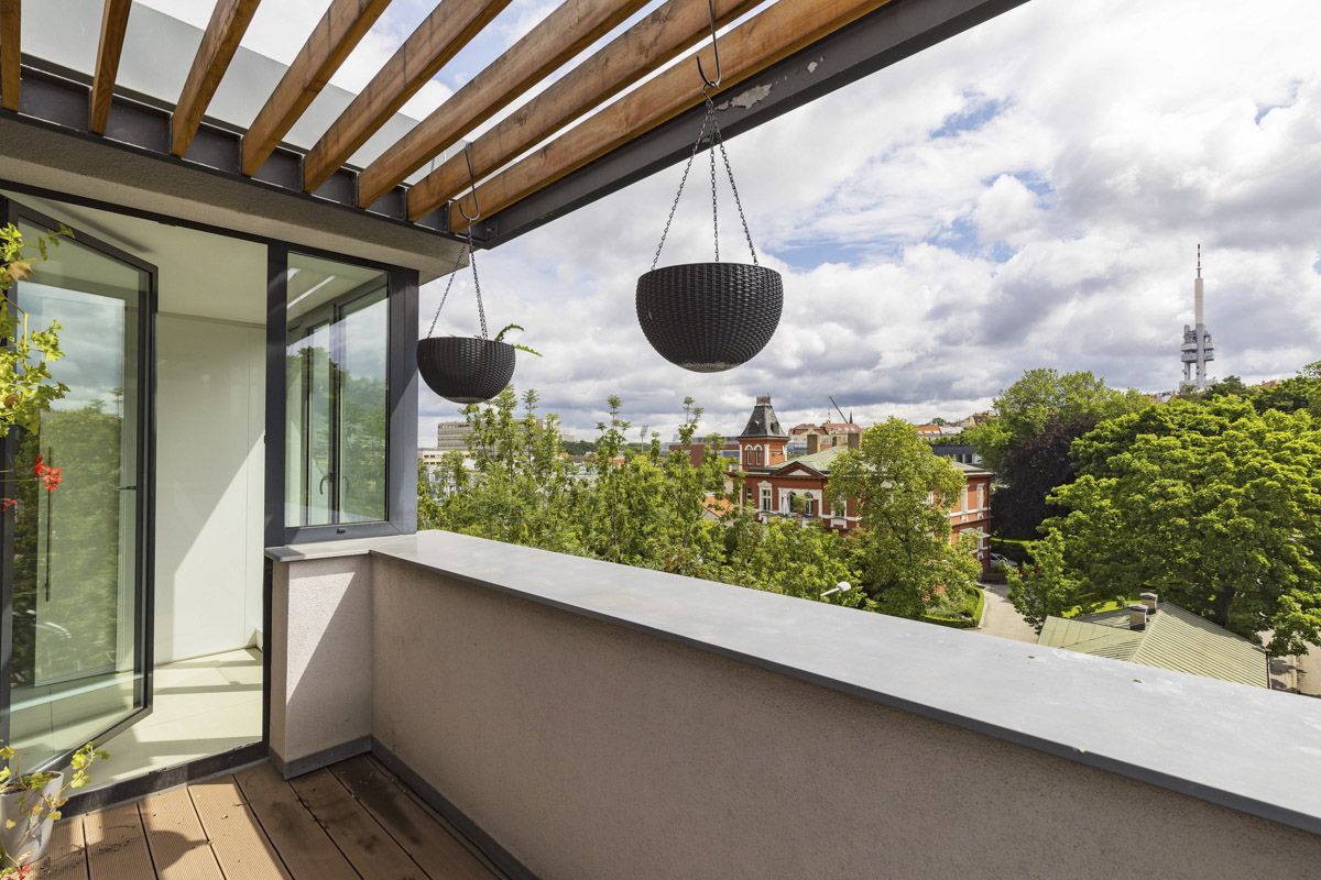 We present for sale an exclusive duplex two-bedroom apartment with a total area of 156 m², located on the 4th and 5th floors, featuring a terrace and a view of the city skyline. The top floor guarantees maximum privacy, and due to the apartment's location in the building, you have only one direct neighbor. The apartment is part of the gated residential complex Rezidence Riegrovy sady, directly opposite the park and within walking distance of Republic Square or Wenceslas Square.