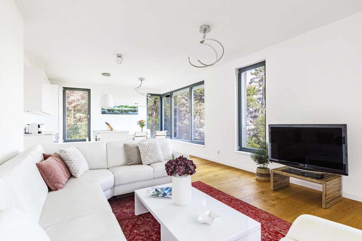 We are offering for sale an exclusive two-bedroom apartment in the prestigious Barrandovska zahrada residence, set in the original villa district of old Barrandov. Located on the 1st floor, this apartment will enchant you not only with its designer interior, but also with its private garden offering enchanting views of the surrounding greenery.