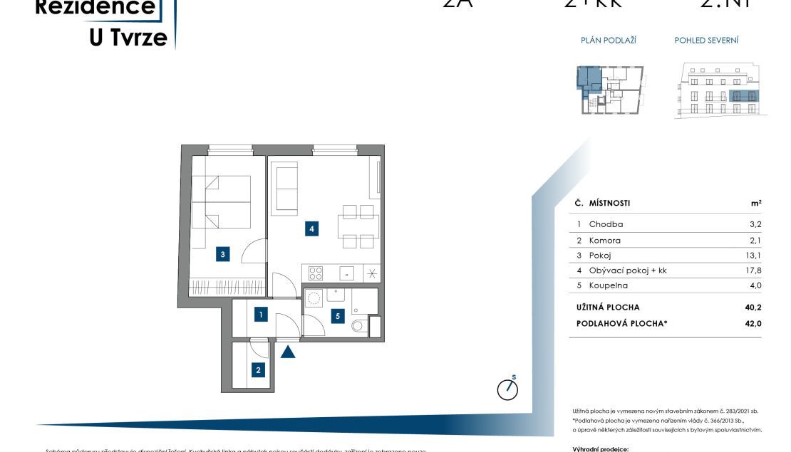 Byt 2+kk o ploše 42 m² se sklepem se nachází ve 2. podlaží Rezidence U Tvrze v Malešicích. Komorní projekt nabízí moderní technologie, kvalitní materiály a bydlení v klidném prostředí s perfektní dostupností do centra.