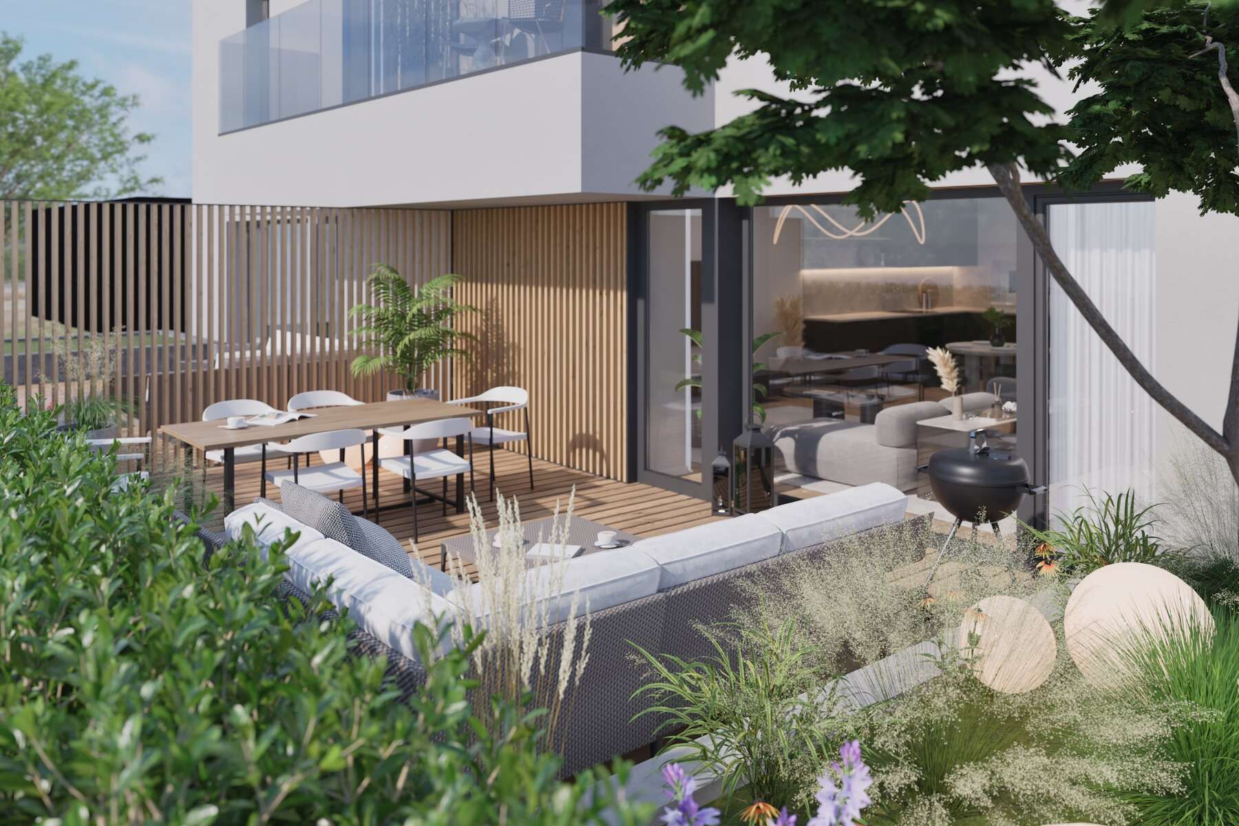 The Via Sancta project represents a new standard of living. It combines modern architecture and cutting-edge technology with an emphasis on sustainability. It offers a wide range of apartments from one-bedroom to spacious three-bedroom, all with a balcony, terrace, or front garden.