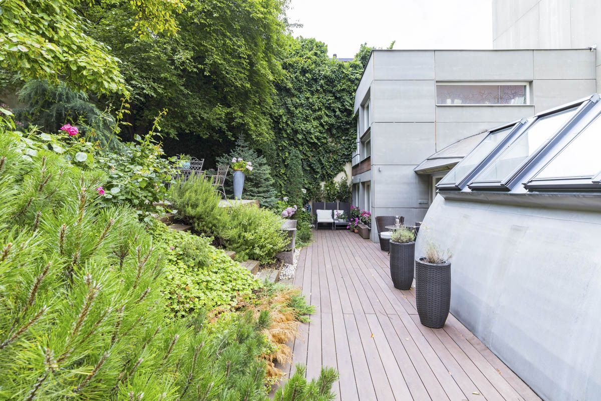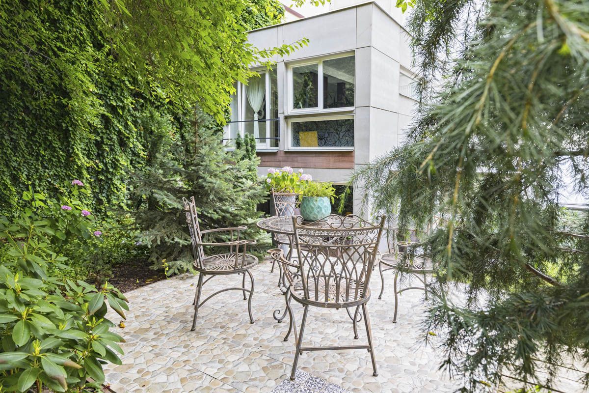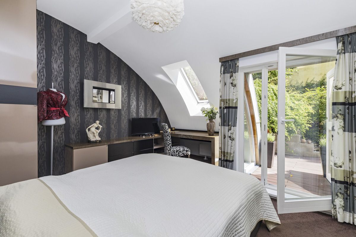 The interior of the apartment and the garden was designed with an emphasis on functionality and aesthetic detail. The apartment is fully air-conditioned (Mitsubishi), and heating is provided by a Junkers gas boiler. The garden is equipped with an automatic irrigation system and outdoor lighting. The equipment includes a fully fitted kitchen, built-in wardrobes, and other custom-made furniture.