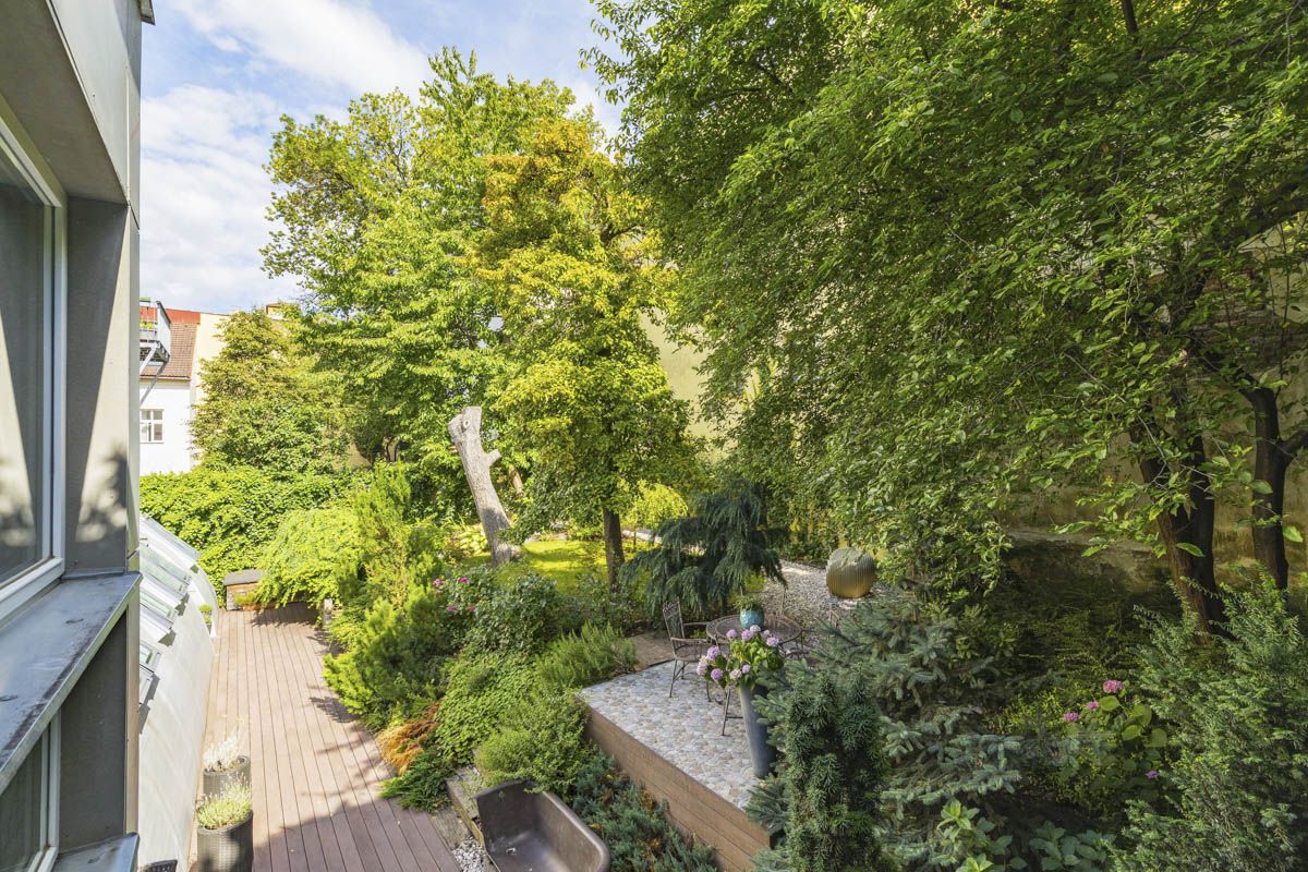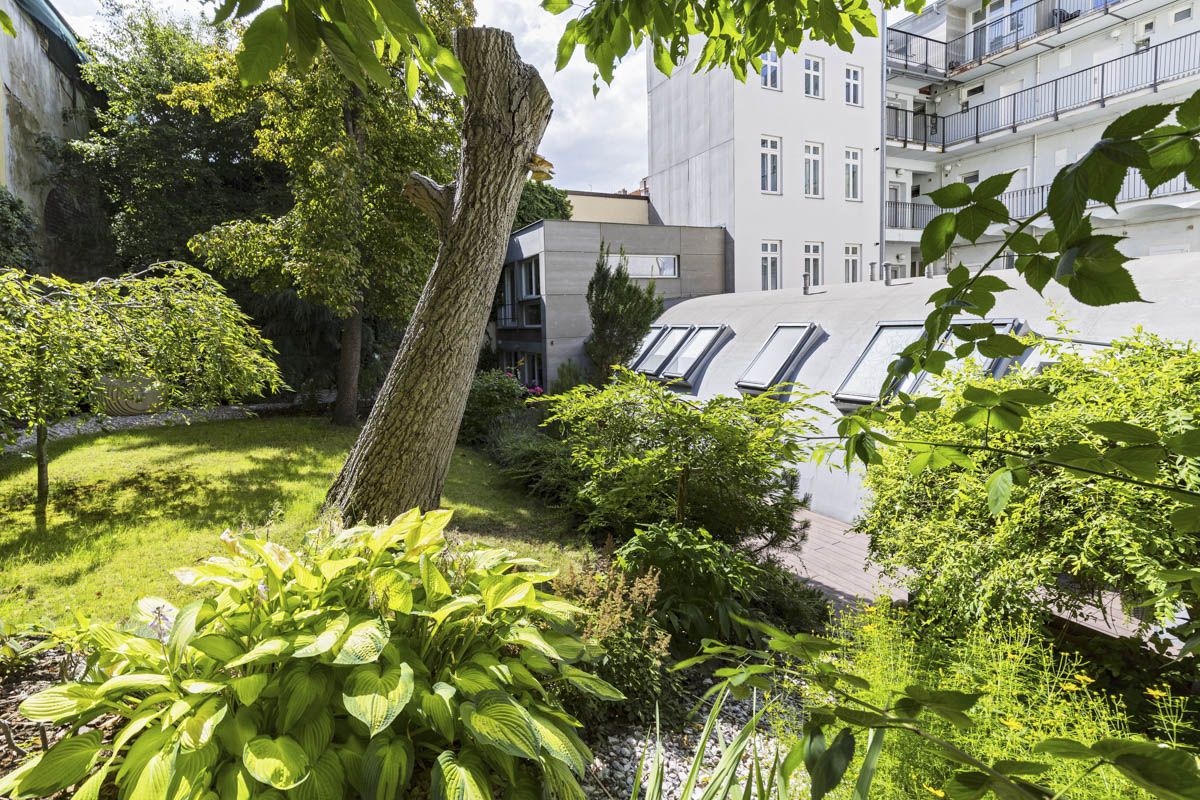 We offer a unique opportunity of an apartment with a four-bedroom layout with a living gallery and a private garden, almost in the city center. The apartment, with a total area of 146 sqm, was created in the courtyard of a historic building from the turn of the 19th and 20th century and offers an oasis of peace in the form of a private, almost maintenance-free garden of 219 sqm, planted with mature trees and shrubs. The location is just a few dozen meters from Riegrovy Sady, and a pleasant walk will take you all the way to Republic Square.