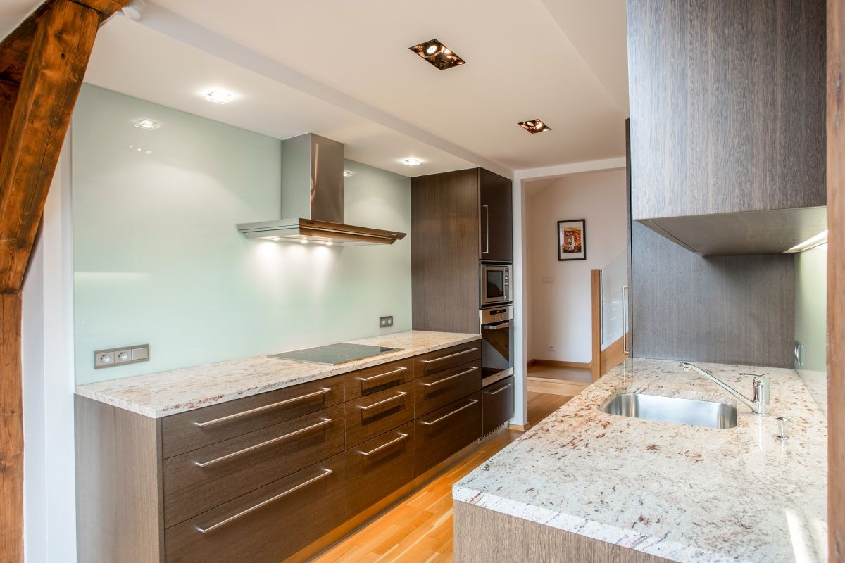 Tento exkluzivní, zařízený byt 5+kk k pronájmu nabízí k užívání vstupní chodbu, prostorný obývací pokoj s krbem, plně vybavený kuchyňský kout (sklokeramická deska, trouba, lednice, mrazák, mikrovlnná trouba a myčka nádobí) a jídelním prostorem. Dále se zde nachází 3 ložnice, 2 koupelny z toho jednu s vanou, pracovnu, galerii, zimní zahradu, samostatnou toaletu a 2 komory. K bytu náleží slunná terasa o velikosti 10 m2. K dispozici je sklep a parkovací stání v zakladači zahrnuto v ceně nájmu. Možnost pronájmu druhého parkovací stání a sklepa za extra měsíční poplatek. Rezidenční dům nabízí služby večerní a noční recepce.