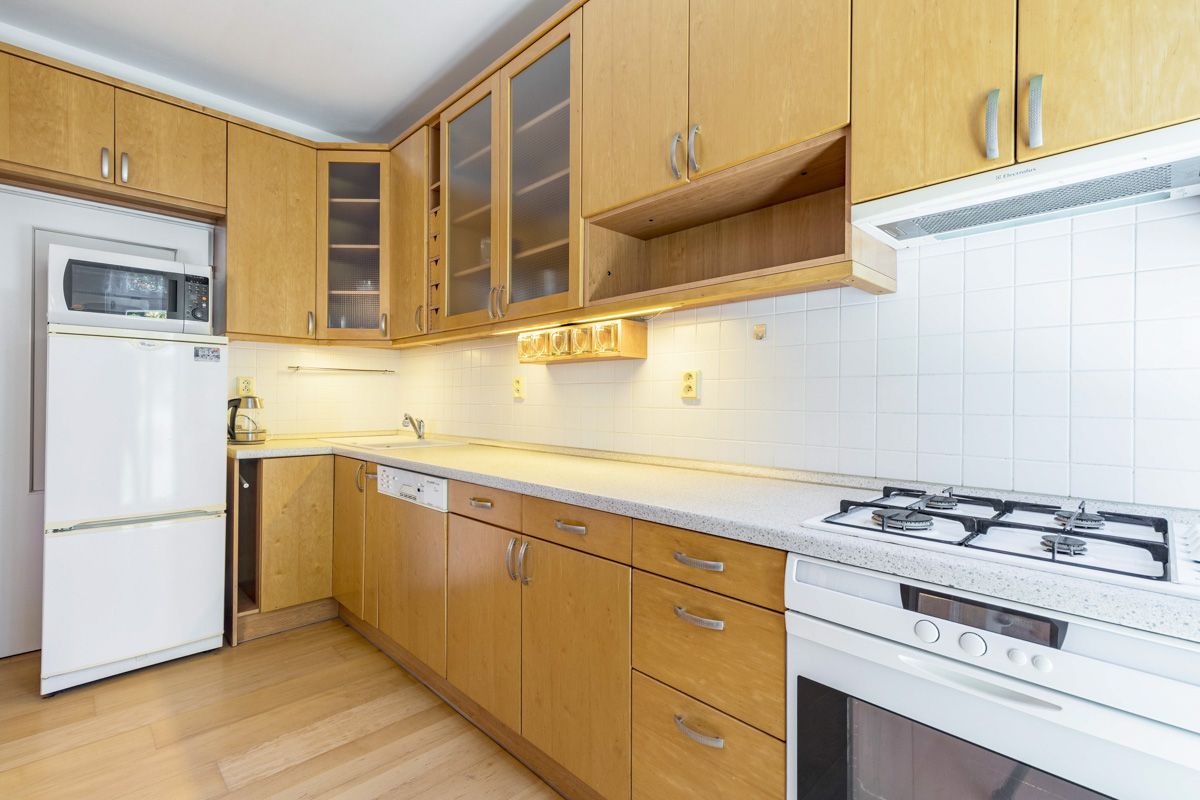 This furnished 2-bedroom apartment with an area of 108 sqm offers an entrance hall with built-in wardrobes, 2 bedrooms, one of which can also be used as a study, a living room with a fully equipped kitchenette (stove, oven, refrigerator, freezer, dishwasher, microwave) and a dining area. There is also a bathroom (bathtub, shower, toilet, and washing machine) and a separate toilet. The apartment has plenty of storage space, and both sofas can be converted into double beds.