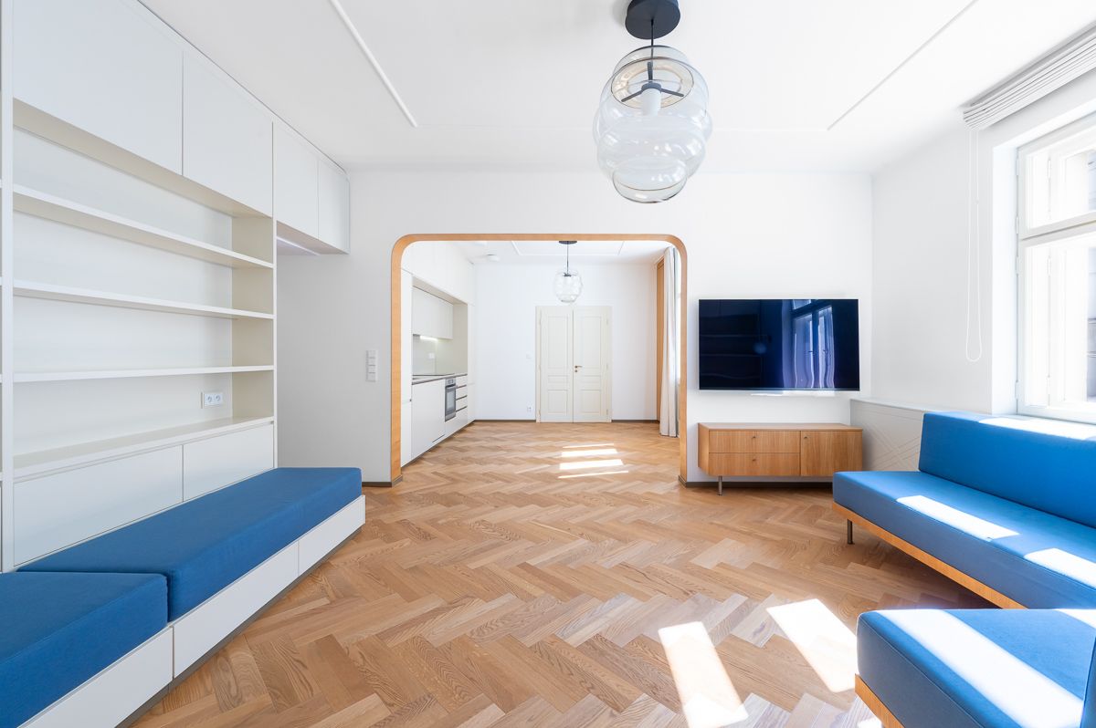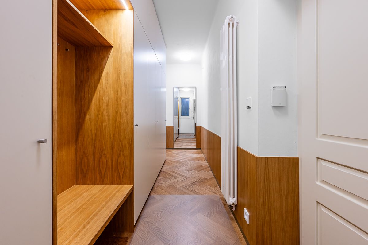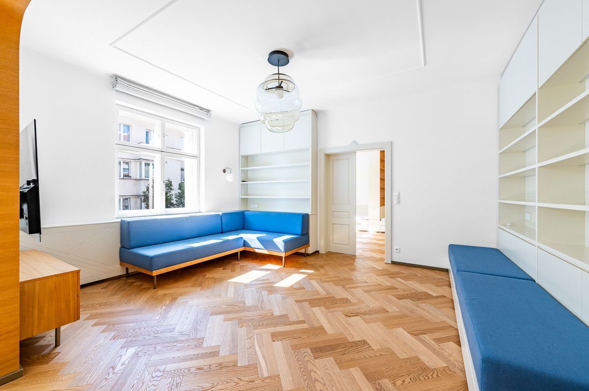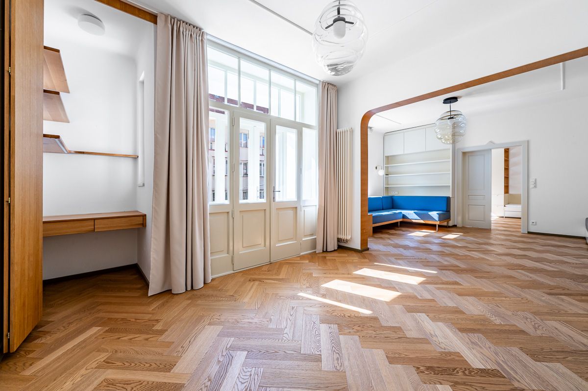 We offer for rent a luxuriously furnished 2-bedroom apartment with an area of 105 sqm and a 4 sqm balcony, located on the 3rd floor with an elevator, completely renovated under the supervision of an architectural firm. The property is located in the sought-after area of Prague 6 - Bubenec, which has all civic amenities and good transport infrastructure.