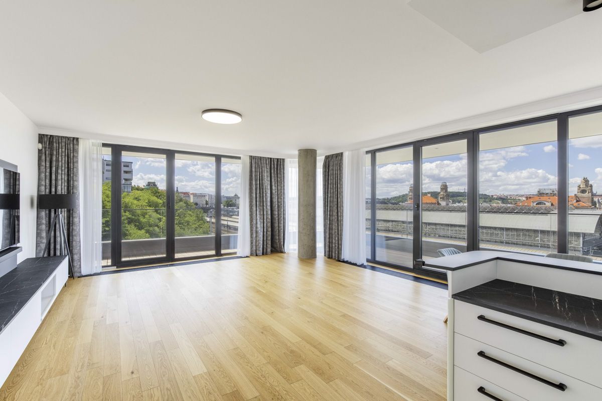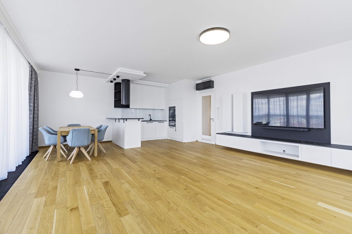 Nabízíme k pronájmu byt 3+kk o velikosti 116 m2 s prostornou lodžií (36 sqm), opisující celou nemovitost, situovaný v 1. patře nového rezidenčního komplexu Rezidence Churchill s recepcí, 24/7 ostrahou a výtahem. Okolí bydlení poskytuje kompletní občanskou vybavenost a vynikající dopravní infrastrukturu (autobusová zastávka Náměstí Winstona Churchilla se nachází před budovou).