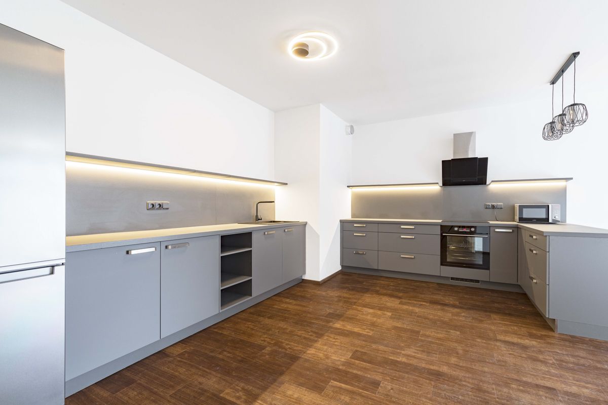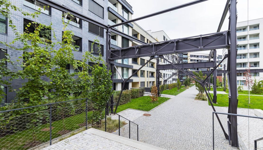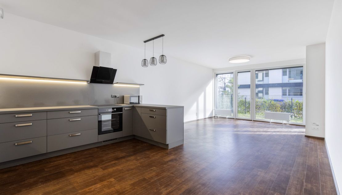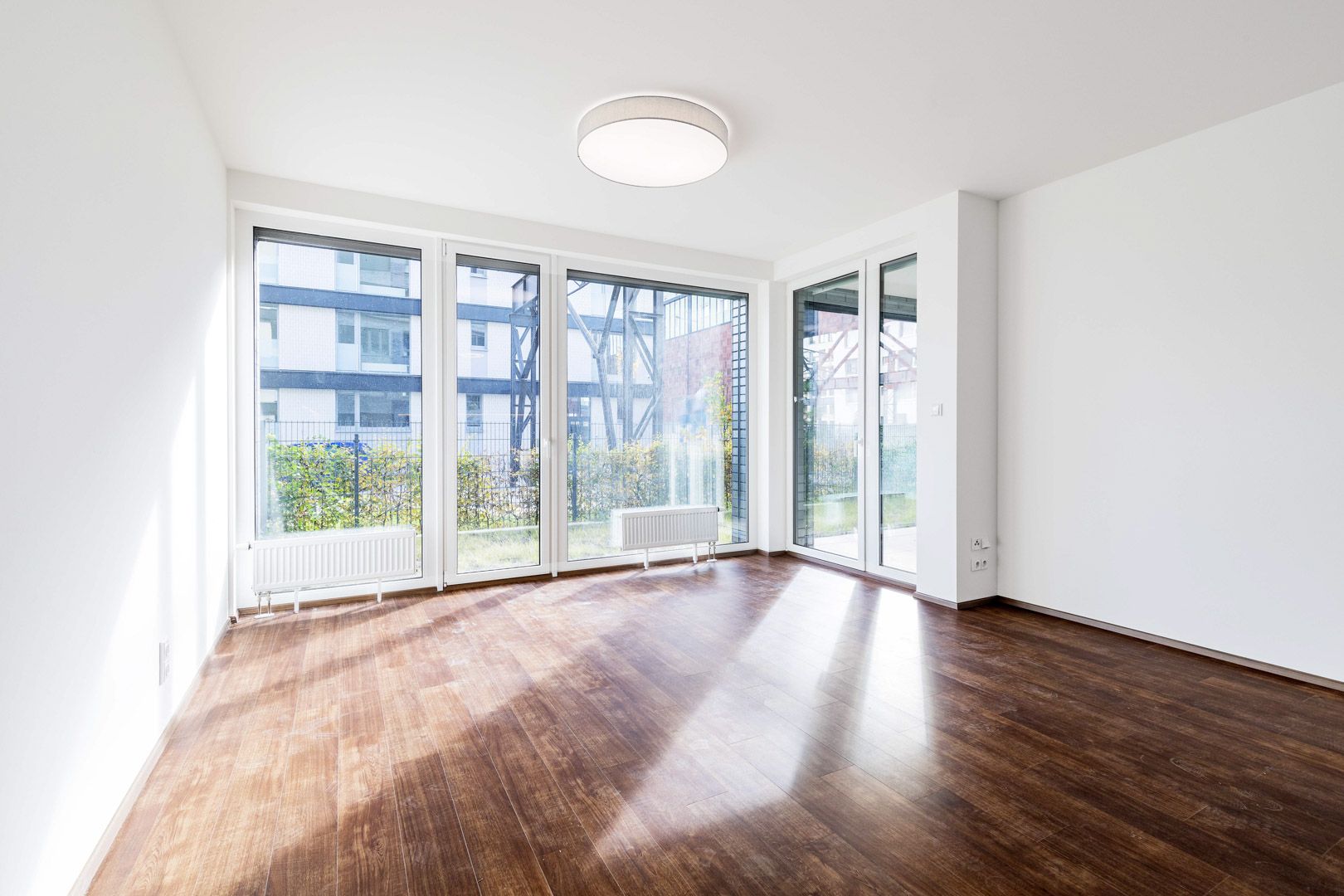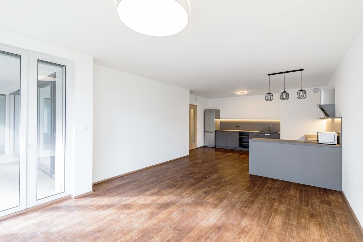 Nezařízený byt 4+kk k pronájmu s lodžií a předzahrádkou v rezidenčním komplexu Pergamenka v Praze 7 - Holešovicích