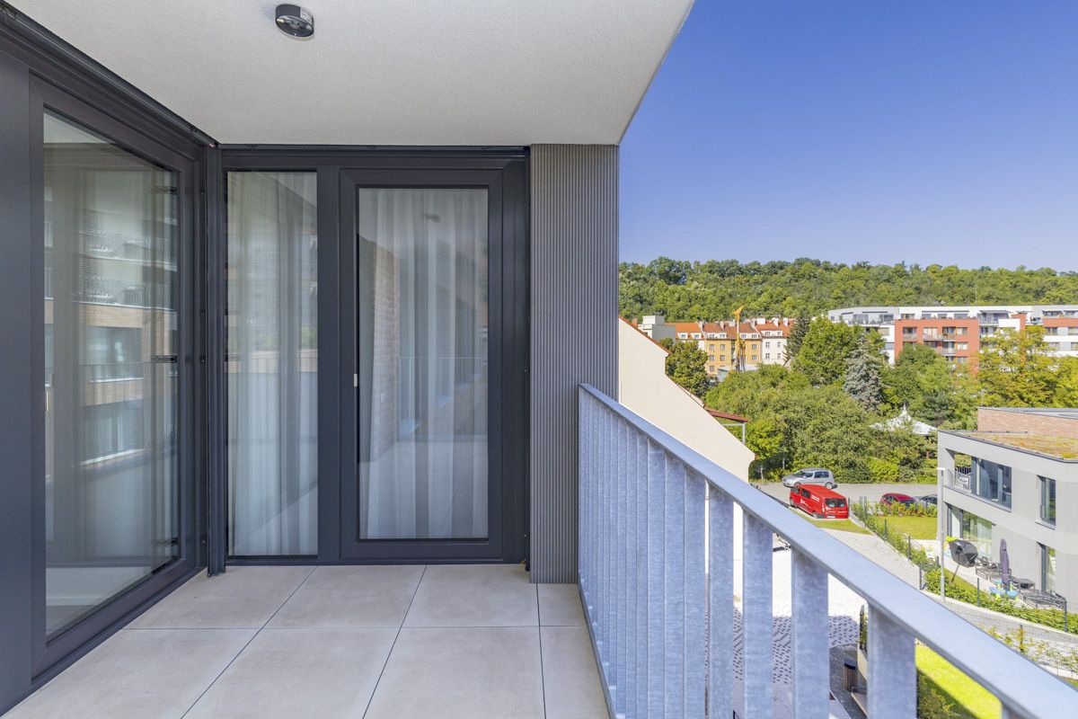 Nový nadstandardní byt 2+kk s terasou, parkováním a sklepem situovaný v nové Rezidenci Michelský park s 24/7 recepcí, Praha 4, Michle