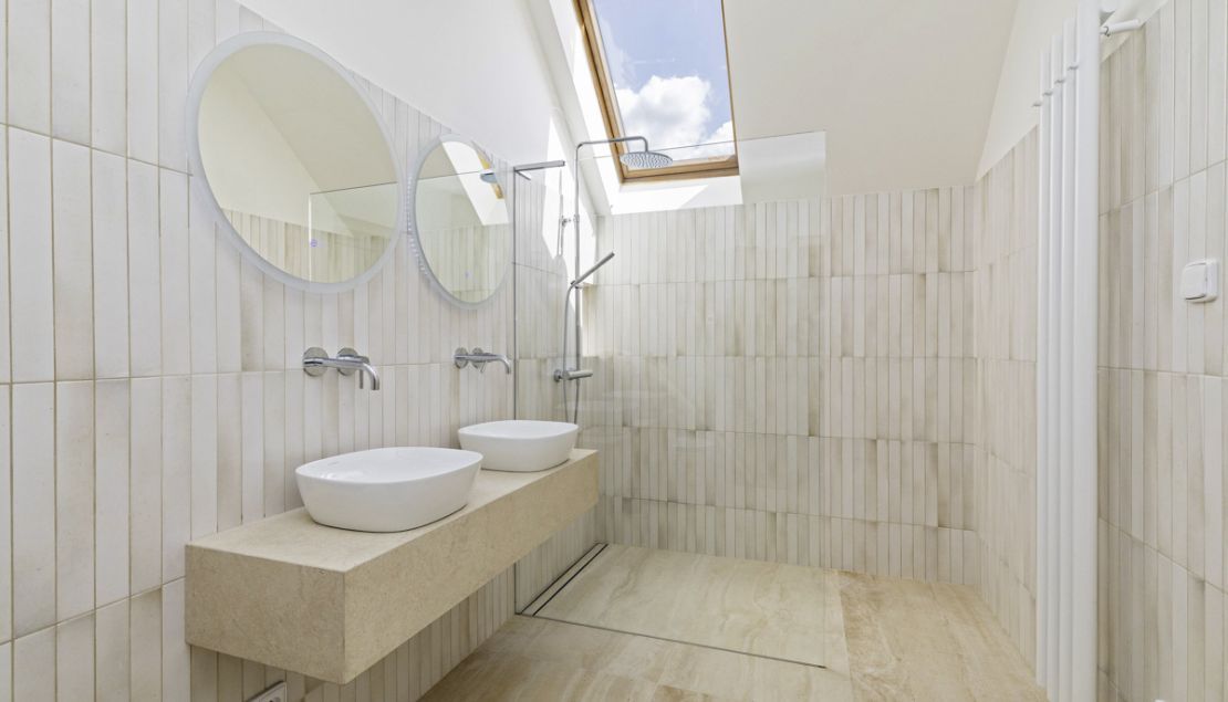 Tento dům se nabízí nezařízený a v přízemí domu nabízí k užívání vstupní chodbu s vestavěnými skříněmi, velkoryse řešený obývací pokoj s krbem a s jídelní částí, plně vybaveným kuchyňským koutem (plynová varná deska, trouba, lednice, mrazák a myčka nádobí) a přímým vstupem na terasu s výhledem do zahrady, chladící místnost, skladovací místnost a vstup do garáže. V prvním patře naleznete 1. ložnici s vestavěnou skříní a přímým vstupem na balkón s výhledem do zahrady, 2. ložnice s vlastní šatnou a přímým vstupem na terasu s výhledem do ulice, 2 koupelny (vana, sprchový kout, toaleta a bidet) a oddělená toaleta. V druhém patře pak nabízí 2 ložnice s vestavěnými skříněmi a koupelnu (sprchový kout a toaleta). V posledním podkrovním patře je prostor, který lze využít dle potřeby (family room, dětská herna, posilovna, pracovna). V patře s přímým vstupem do zahrady se nachází ložnice / oddělené studio, koupelna (sprcha, sauna), vinný sklípek, samostatná toaleta, technická místnost s odděleným vstupem do domu (pračka a sušička), chodba a vstup do dvojgaráže.