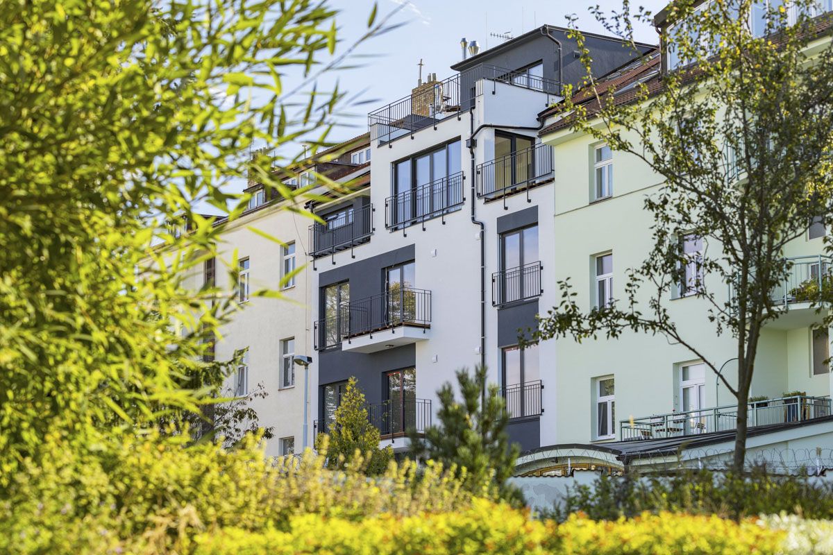 The Topolka residence is located on a quiet cul-de-sac that ends in a park. From here, you can easily walk to Vyšehrad and then down the park path and stairs to the river in Podolí – an ideal route for walks, sports, and everyday relaxation. The location has tram and bus stops as well as metro stations Vysehrad and Prazskeho povstani. By car you can reach the city ring road in 2 minutes, Vaclav Havel Airport in 29 minutes, Westfield Chodov shopping and entertainment centre in 10 minutes. In the place you will find all civic amenities - kindergartens, primary and secondary schools, gymnasium, Newton University; pharmacies, polyclinic, restaurants, supermarkets, playgrounds and post office.