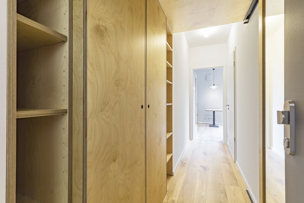 The bright interior of the apartment offers an entrance hall with built-in wardrobes, a living room with a equipped kitchenette (hob, refrigerator, freezer and dishwasher), a dining area with access to a 3.5 sqm balcony, and a bathroom with a shower and washing machine. The apartment has underfloor heating. The price also includes regular cleaning of the apartment once every 14 days.
