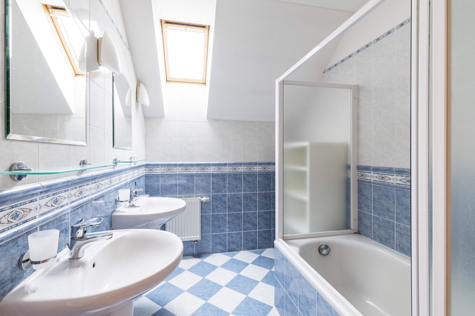 V přízemí domu se nachází vstupní hala, prostorný obývací pokoj se vstupem na terasu (36 m2) a zahradu, samostatná plně vybavená kuchyň (sklokeramická deska, lednice, mrazák, trouba, mikrovlnná trouba a myčka nádobí) včetně jídelního prostoru, pracovna, technické zázemí a garáž pro 2 vozidla. Horní patro dispozičně nabízí 4 ložnice, z nichž dvě mají přístup na vlastní balkon, šatnu a 2 koupelny disponující vanou či sprchovým koutem. V suterénu je prádelna, kotelna, herna / fitness a vstup do garáže. Součástí vybavení nemovitosti je alarm s možností napojení na bezpečnostní agenturu, vestavěné skříně, půdní úložný prostor, satelitní TV připojení. K nemovitosti náleží vyhřívaný krytý bazén, nádherně udržovaná zahrada a garáž pro 2 vozidla.