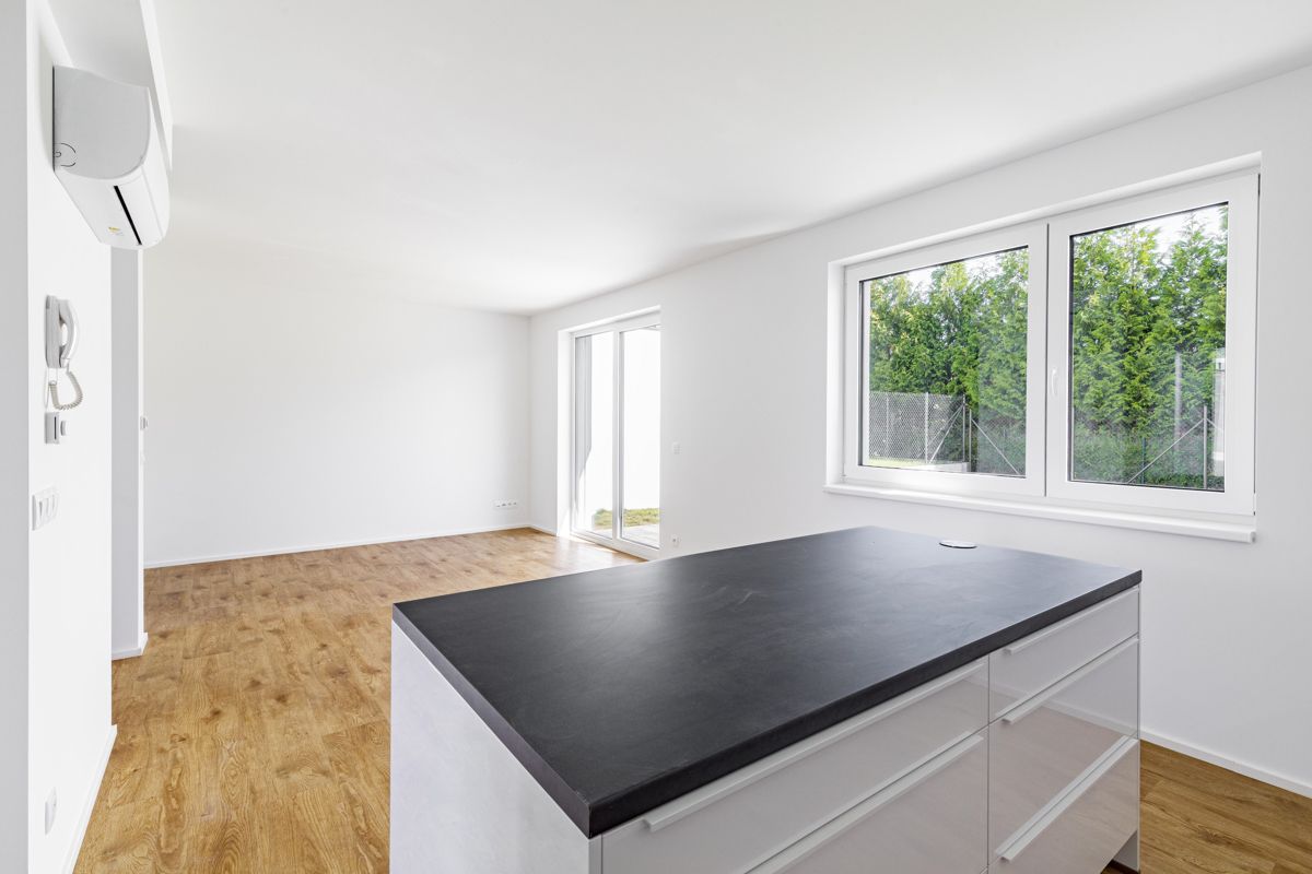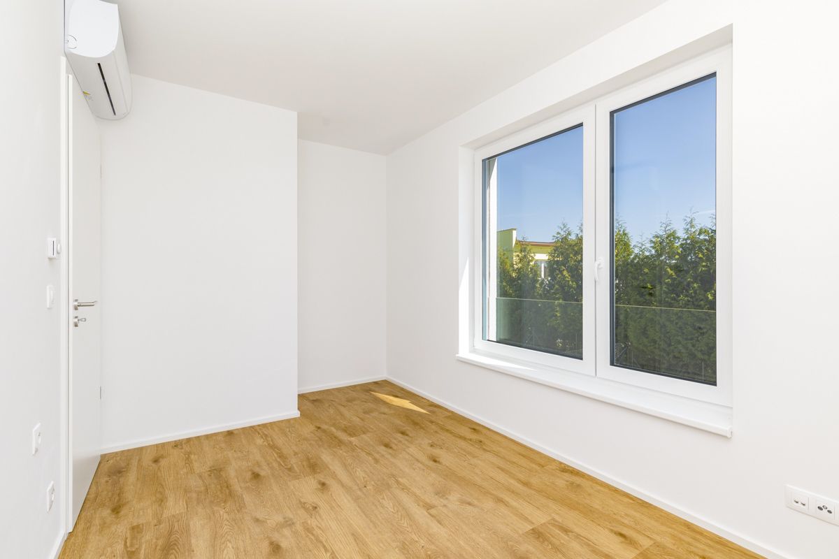 Tento dvoupodlažní řadový dům k pronájmu nabízí k užívání v přízemí vstupní chodbu, obývací pokoj s plně vybaveným kuchyňským koutem (sklokeramická deska, trouba, lednice, mrazák, mikrovlnná trouba a myčka nádobí), samostatnou toaletu a pracovnu. V horním patře se nachází 3 ložnice a koupelna (vana, sprcha, toaleta). Dům je vybaven moderní klimatizační jednotkou s funkcí chlazení i vytápění, která zajišťuje příjemnou teplotu po celý rok. Součástí nemovitosti je na předzahrádce samostatně stojící garáž se snadným vjezdem z ulice a druhé parkovací místo před vchodem.