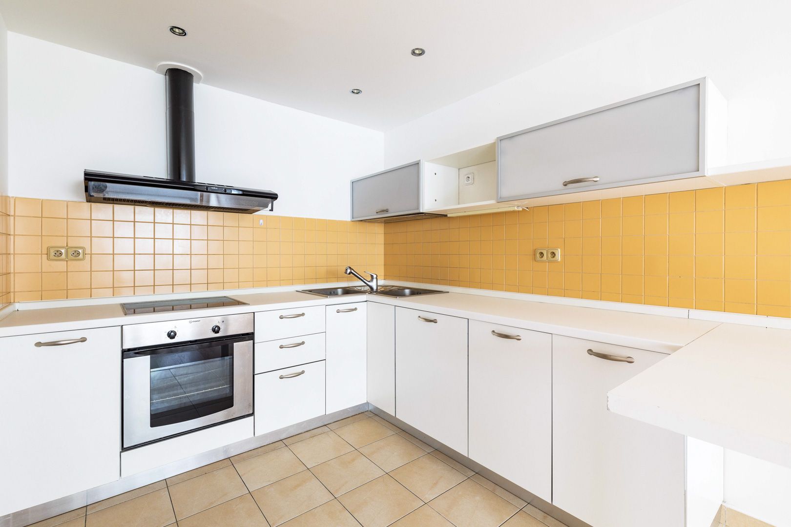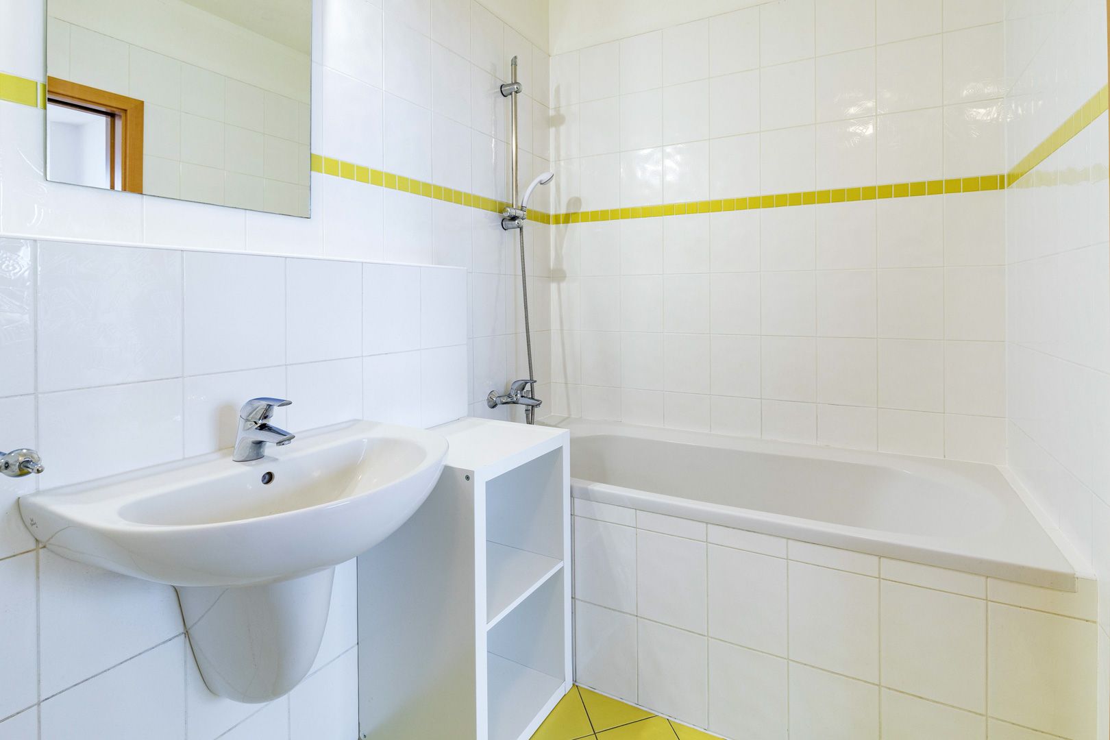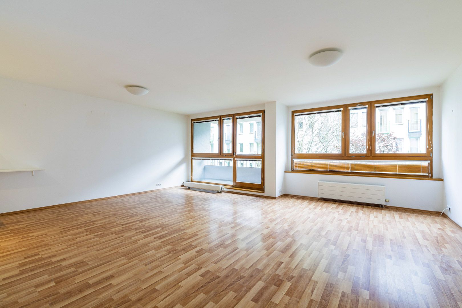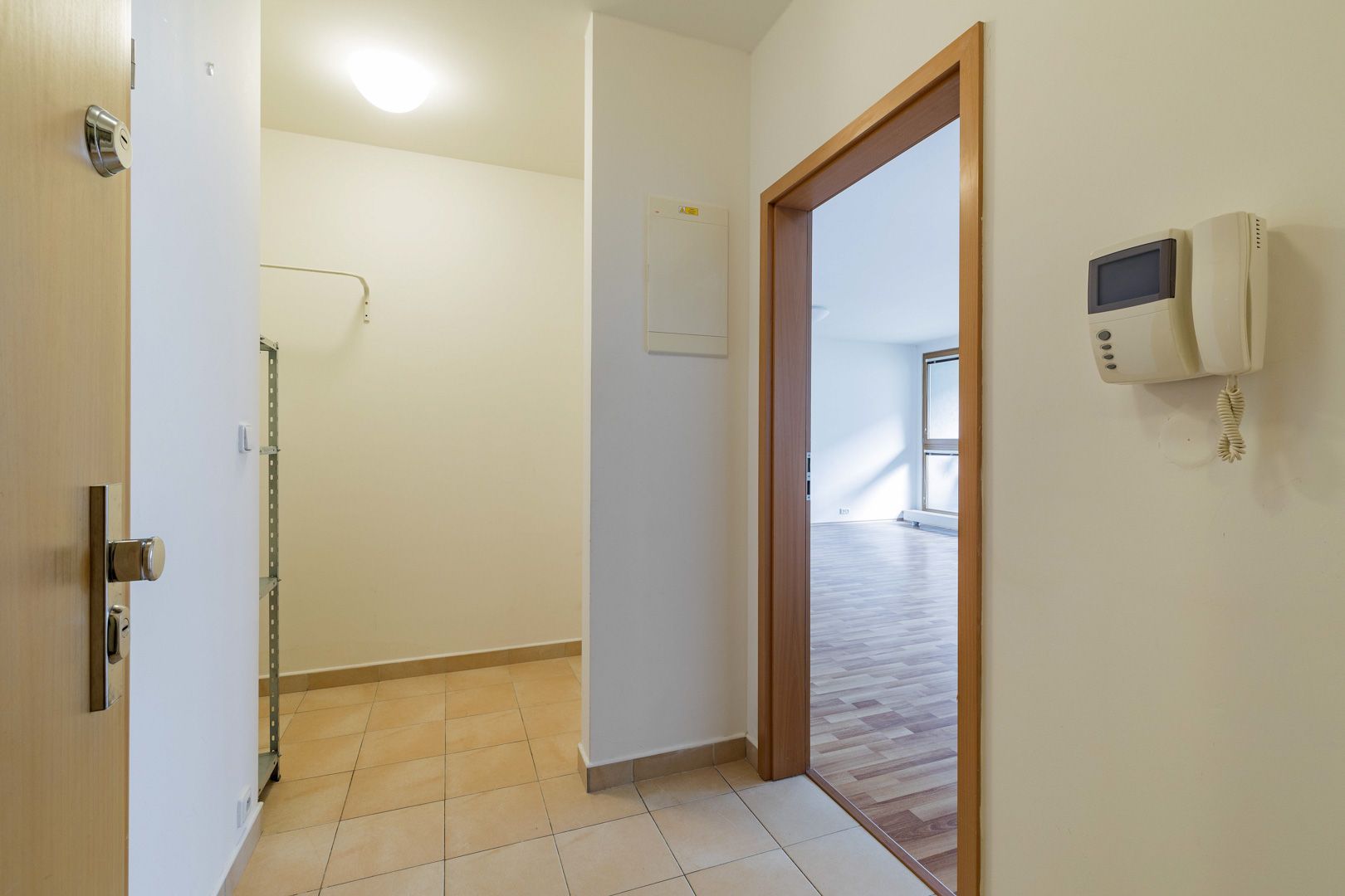 This bright unfurnished 1-bedroom apartment for rent offers an entrance hall, spacious open plan living room with access to the balcony, fully equipped kitchenette (stove, oven, fridge, freezer and dishwasher) including dining area, master bedroom, bathroom with a bathtub and shower and a storage room. The apartment has a balcony facing a quiet courtyard. The rent includes basement. Two parking spaces for an additional fee of CZK 1,500.