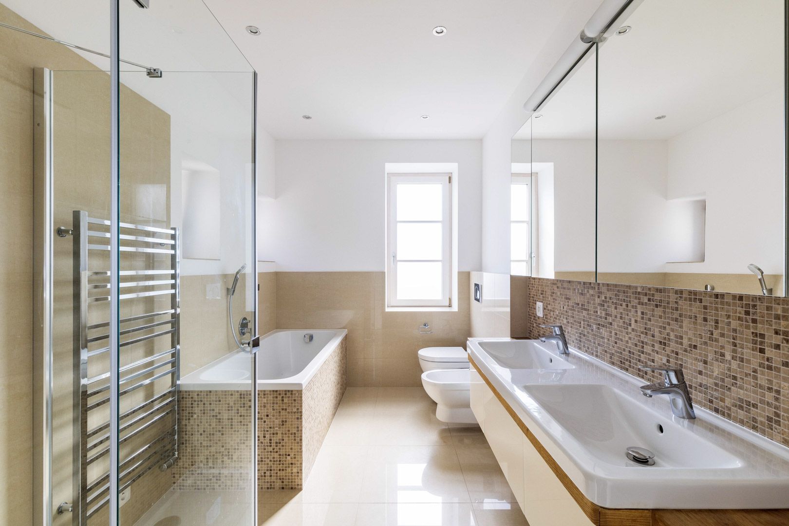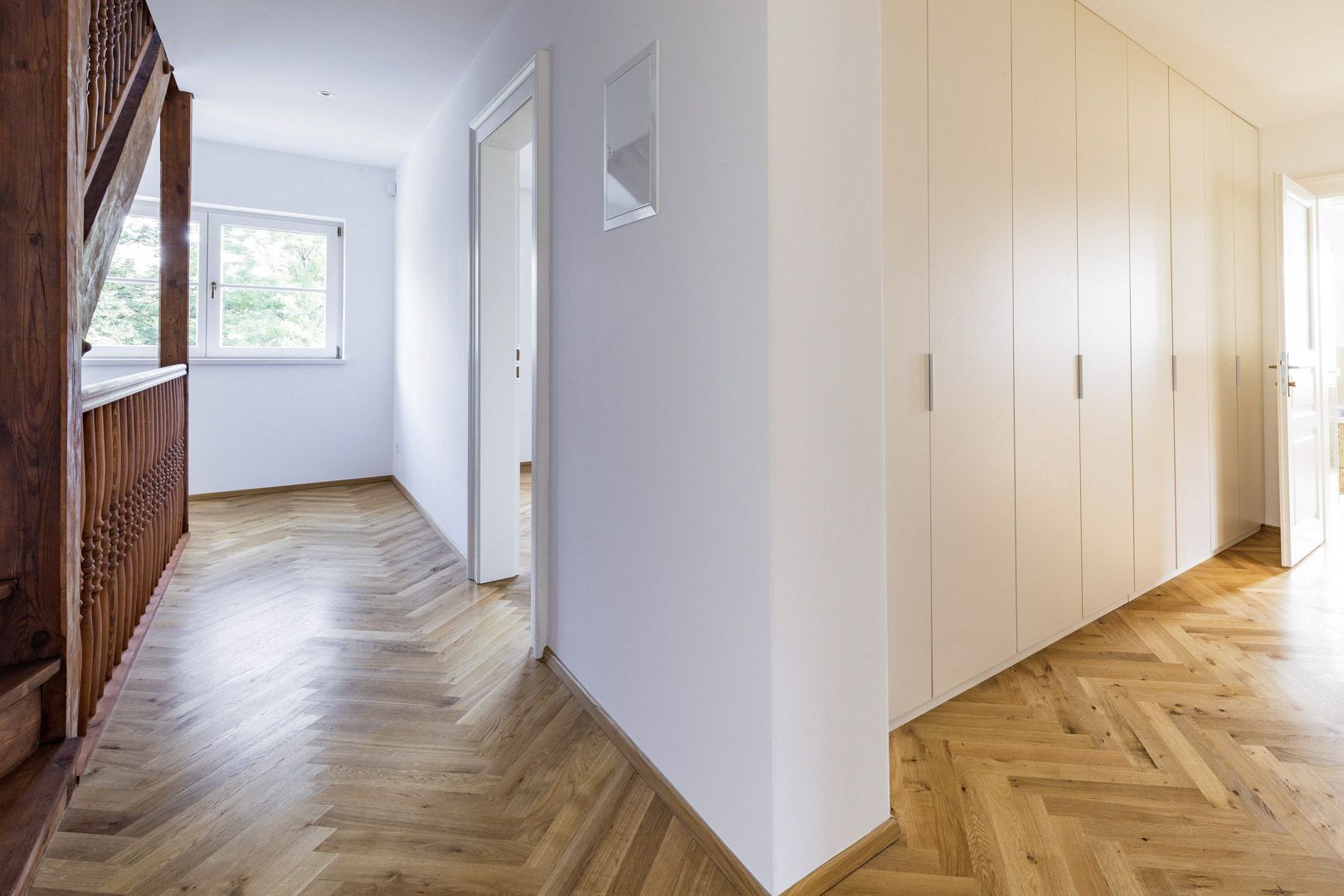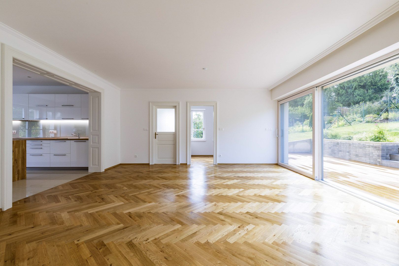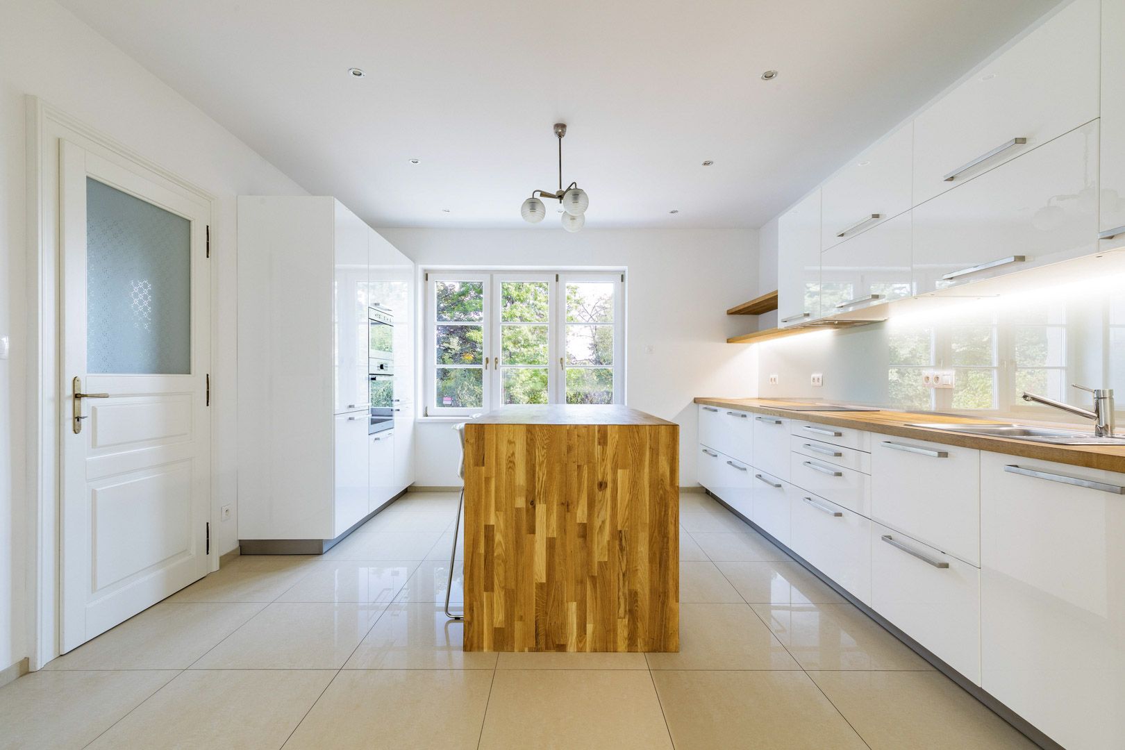 V přízemí tohoto luxusního nezařízeného domu 6+1 k pronájmu o velikosti 220 m2 je situována prostorná vstupní hala, obývací pokoj se světlou moderně vybavenou kuchyní (indukční varná deska, trouba, lednice, mrazák, mikrovlnná trouba a myčka nádobí). Z obývacího pokoje je uzpůsoben vstup na prostornou terasu a udržovanou svahovitou zahradu. Dále pak pracovna, samostatná toaleta a komora. V prvním patře lze naleznout 3 ložnice a koupelnu (vana, sprchový kout, toaleta, bidet a dvojumyvadlo). Podkroví tvoří ložnice, prostorná šatna a koupelna (s vanou a sprchovým koutem). Součástí vybavení domu jsou nadstandardní vestavěné skříně. Suterén domu nabízí fitness místnost o rozloze 50 m2, prádelnu a sklepní prostory. K nemovitosti dále náleží prostorná garáž. Dům prošel kompletní rekonstrukcí a splňuje vysoké standardy moderního bydlení. Dominantou interiéru je elegantní dřevěné schodiště. Na podlahách jsou kvalitní dubové parkety v kombinaci s keramickou dlažbou. Komfort zajišťuje podlahové vytápění, bezpečnostní systém s alarmem a kamerovým dohledem.