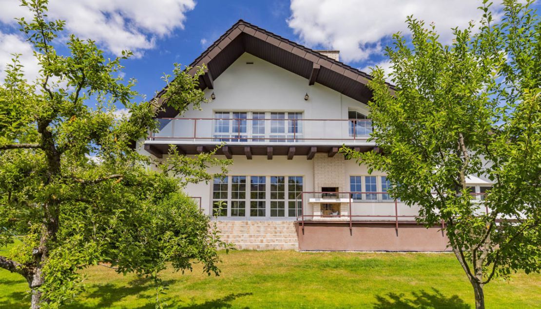 V přízemí domu se nachází vstupní předsíň s vestavěnou skříní, plně vybavená kuchyň (sklokeramická deska, trouba, mikrovlnná trouba, lednice, mrazák a myčka nádobí) s navazující jídelnou, prostorný obývací pokoj s krbem a samostatný pokoj pro hosty. Součástí této části domu je také koupelna (sprchový kout, vana a toaleta). V podkroví jsou čtyři ložnice, druhá koupelna (sprchový kout, vana a toaleta). V suterénu se nachází prádelna, technické zázemí, hobby místnost a sauna s odpočinkovou místností a sprchou. Dům dále disponuje garáží, druhá garáž poblíž domu. K nemovitosti náleží udržovaná zahrada o velikosti 600 m2. V domě jsou rozvody pro TV/SAT, telefonní linka, svítidla ve všech místnostech a alarm s možností napojení na policii. Dům se hodí také jako sídlo firmy nebo kanceláře.