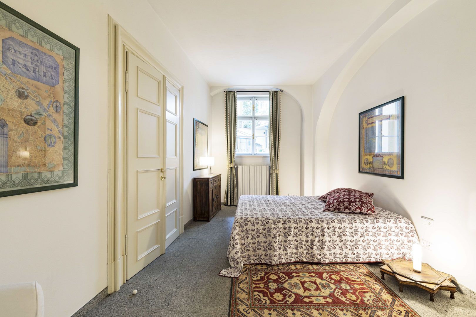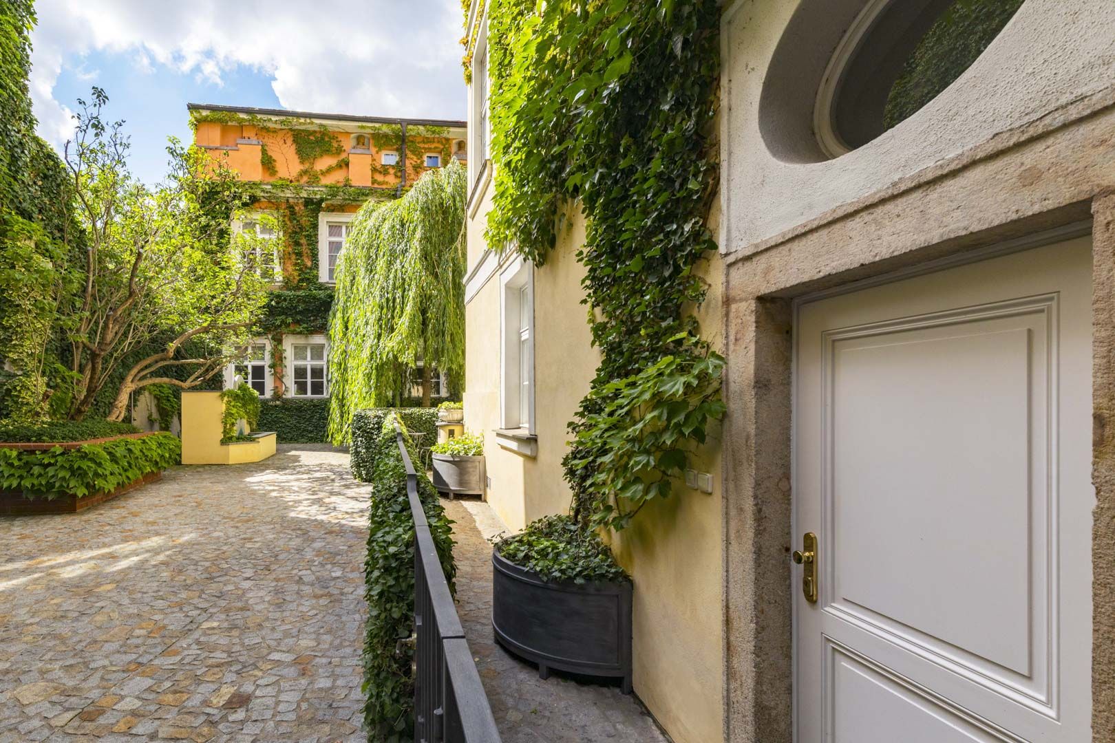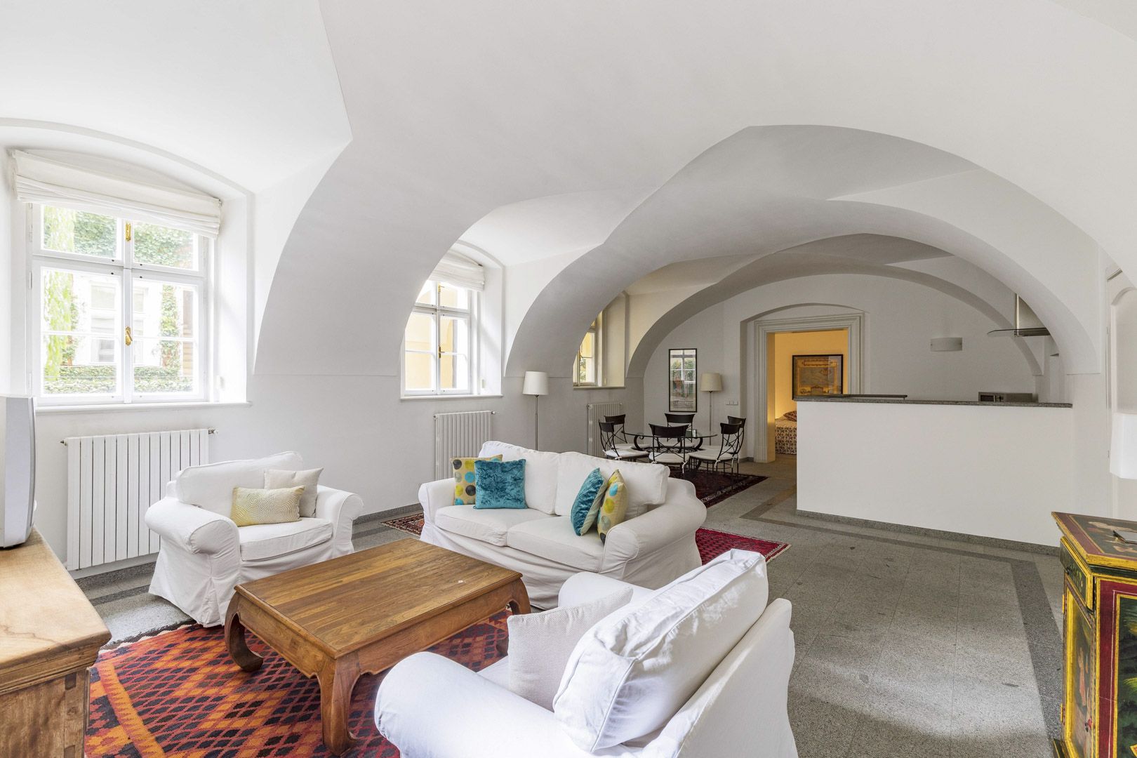 Atypical apartment with vaulted ceilings and with spacious terrace for rent located on the ground floor of a historic building directly under the Petřín lookout tower in a beautiful part of Prague 1 - Malá Strana.