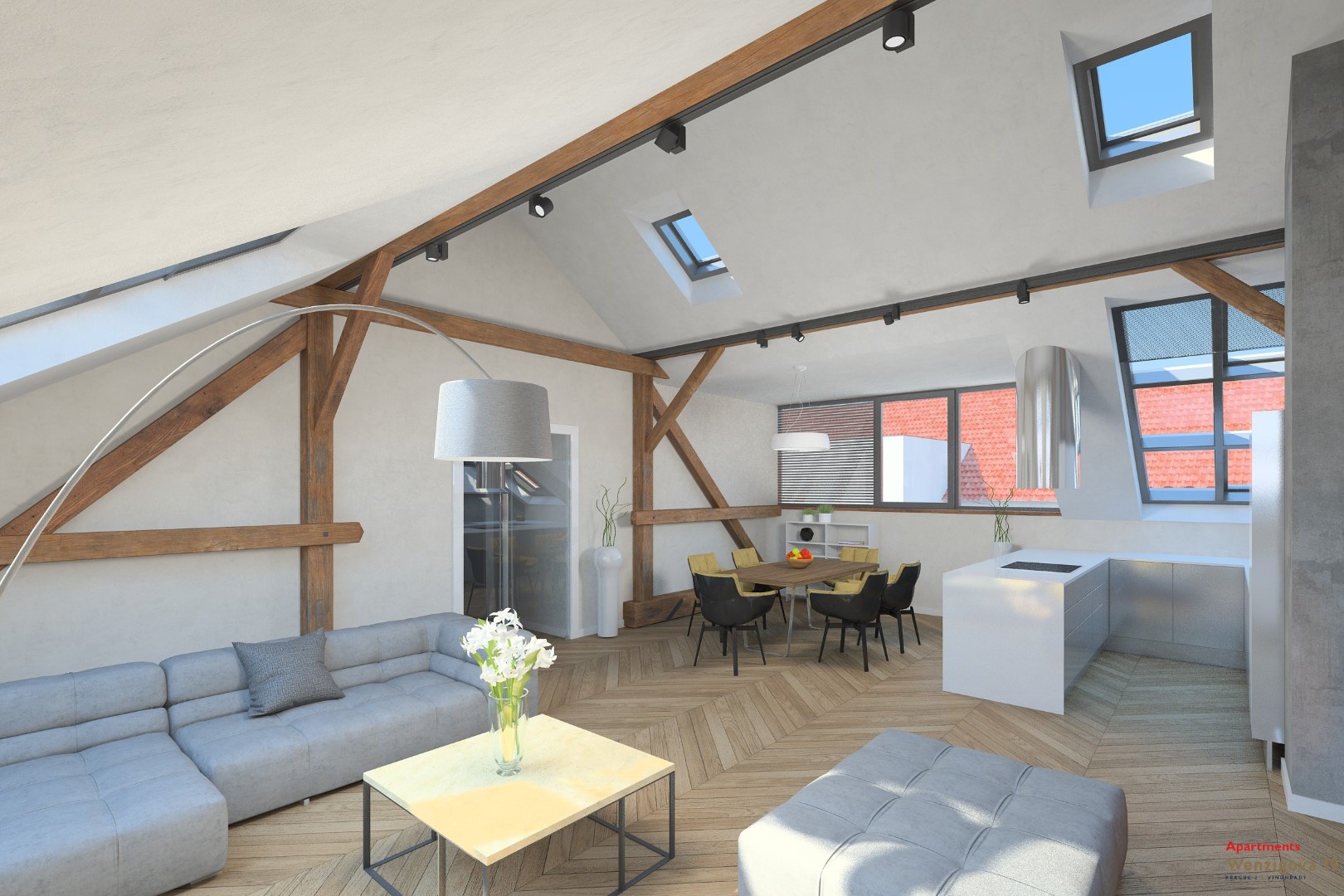 Exkluzivní vinohradské podkrovní byty s terasami na rozhraní ulic Wenzigova a Lublaňská s ojedinělým řešením obytných prostor.